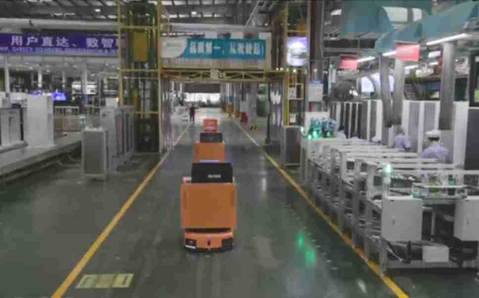 为车载冰箱物流配送打造的智能解决方案,,包含产中物流通过潜伏举升AMR搬运至线边,,产后成品物流智能仓储,,流程包含产中物流智能齐套入库,,,线边安灯叫料AMR智能配送至线边,,,,成品入库、、出库,,,,通过无人堆高车机器人,,,,智能仓储管理替代人工作业管理,,,,实现更高存储、、、更高效率、、更具柔性化的解决方案。。。。